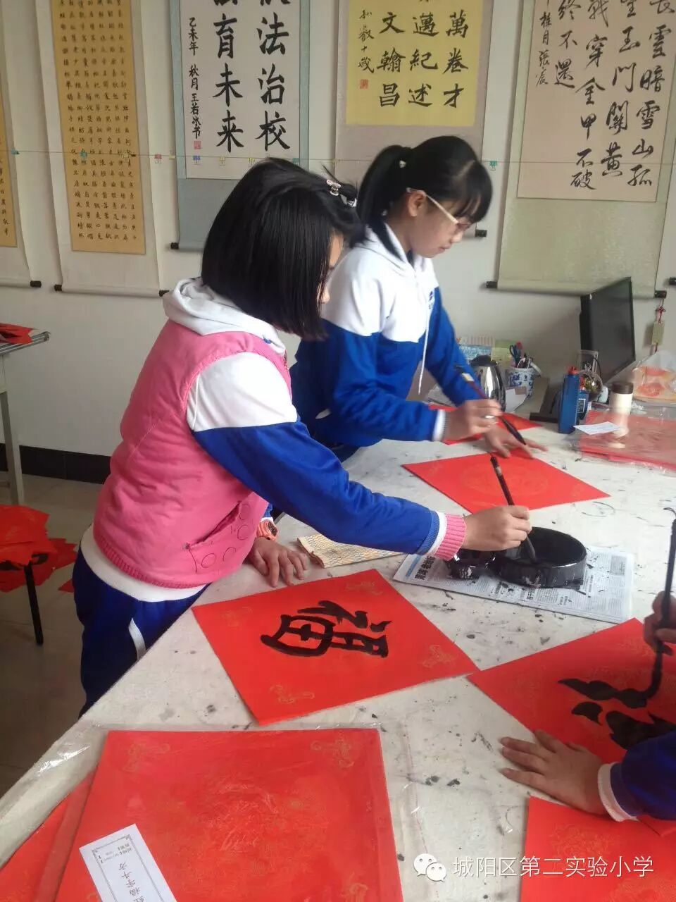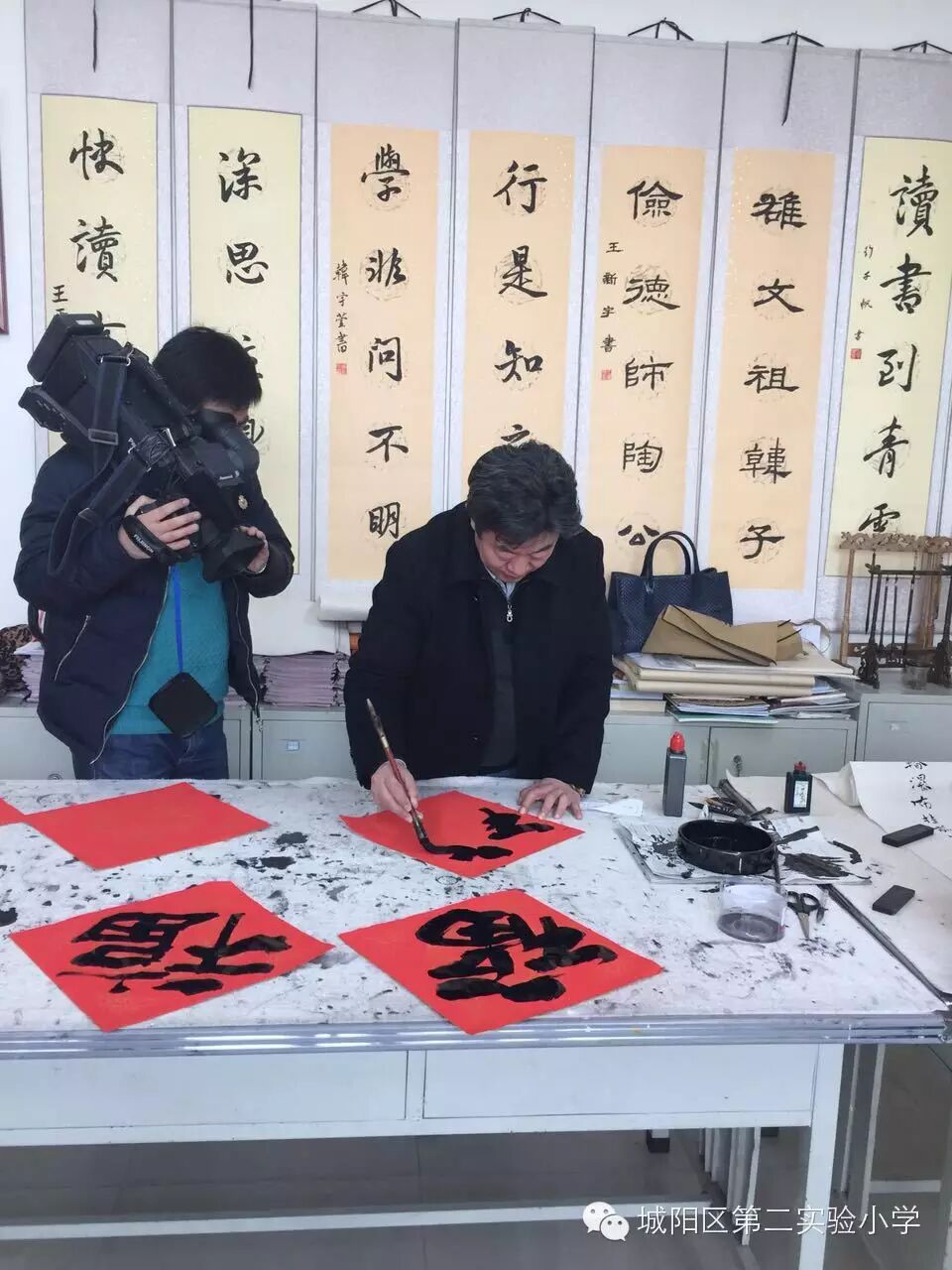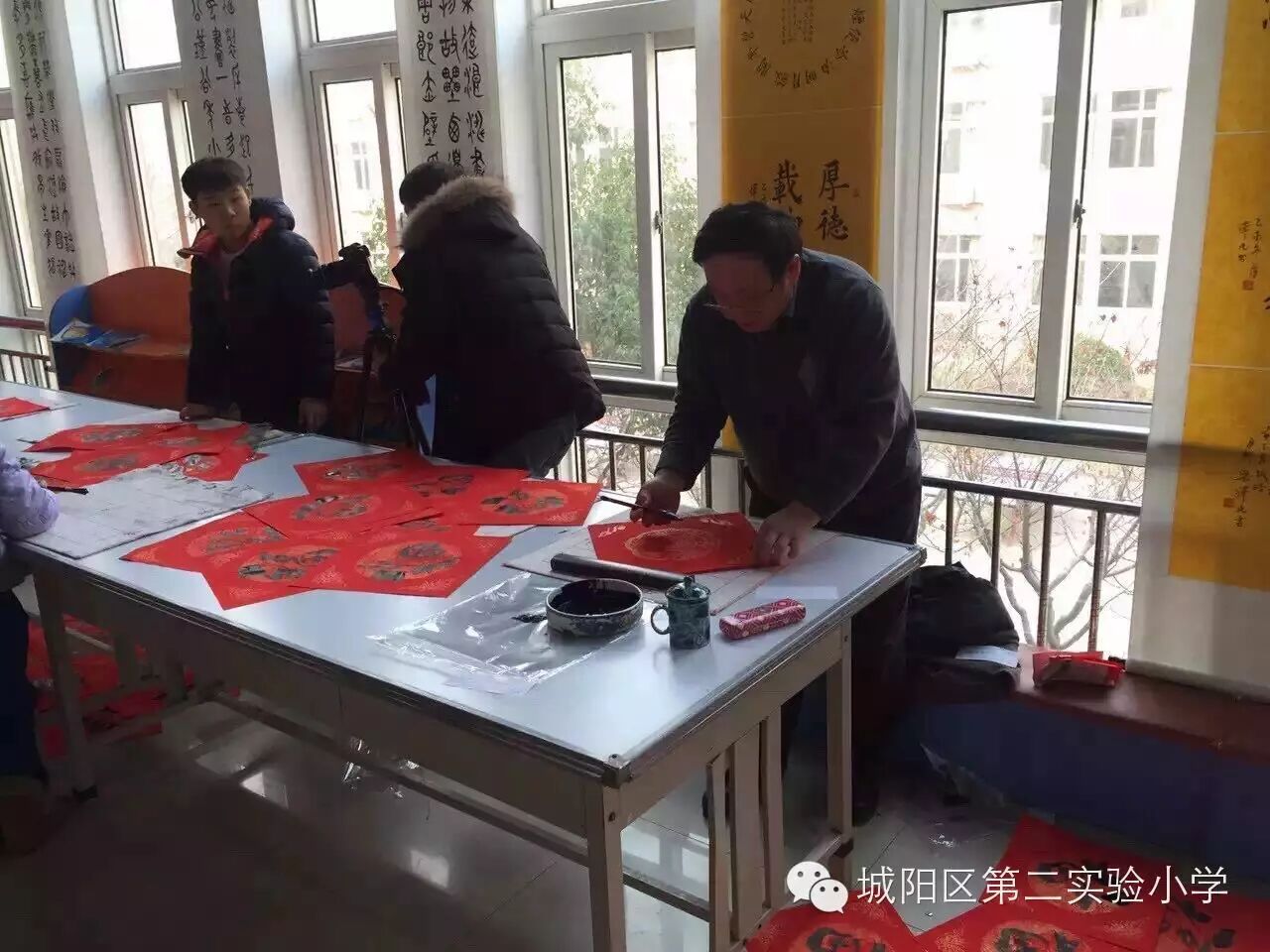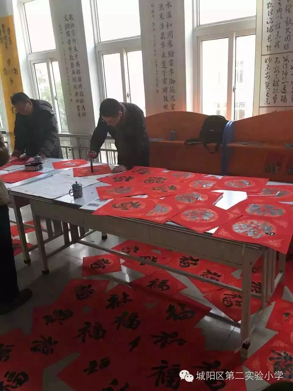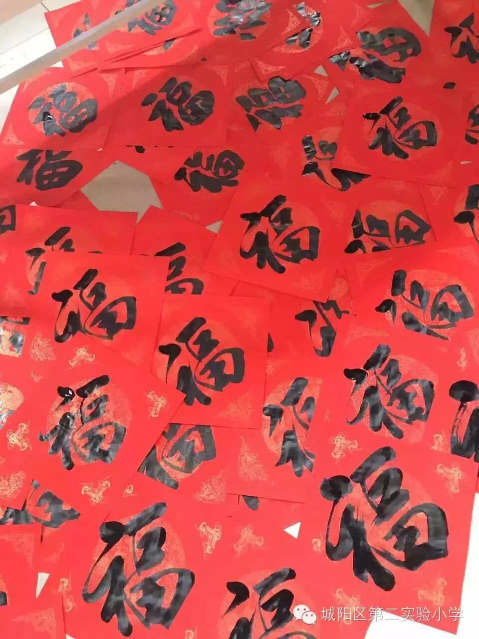 转眼间,一张张各具特色的“福”字呈现在眼前。在大家的齐心创作下,共书写了4000多张“福”字。不同的字体、不同的风韵,却有着相同的温暖。二小将在31日的元旦庆祝活动中,为全校师生送上新年最真诚的祝福! 活动结束后,书法家们还为二小提笔留字,送上了自己的墨宝,希望实验二小的全体师生都能实现自己的愿望!本次活动的成功开展,不仅让孩子们感受到了节日的气氛和亲人们的关爱,还受到了传统书法文化的熏陶。相信在社会各界的朋友们的关心下,二小的孩子们定能福星高照,成为一个真正的有福之人!