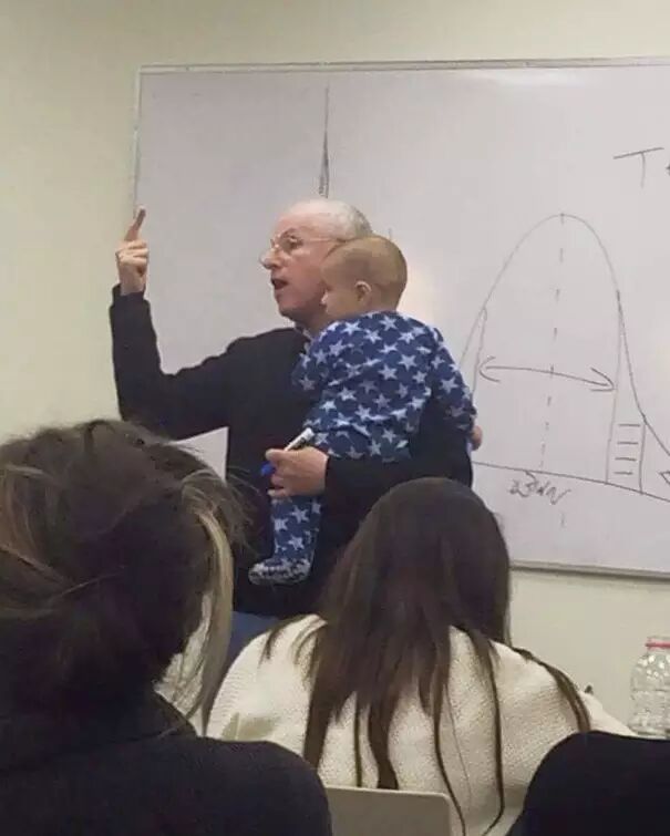 10、一位学生不得已带自己的宝宝来上课,而孩子在课堂上哭闹不止,而这位教授不仅没将他们赶出去,而且哄好孩子,抱着孩子继续讲课。