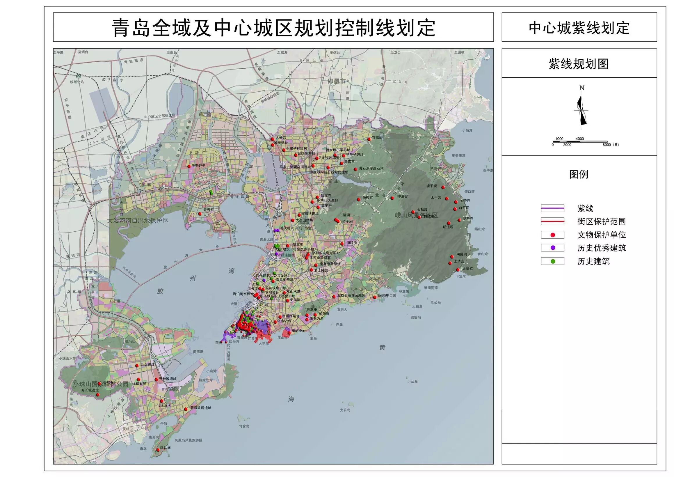 在市规划局公布的规划图中,青岛市中心城区规划控制线划定的范围包括市南区、市北区、李沧区、崂山区、城阳区、黄岛区(不含胶南组团),陆域总用地面积1408平方公里,明确了中心城区生态、主要交通与市政设施等发展与保护的总体框架,是中心城区各项规划编制、建设与管理的重要依据。