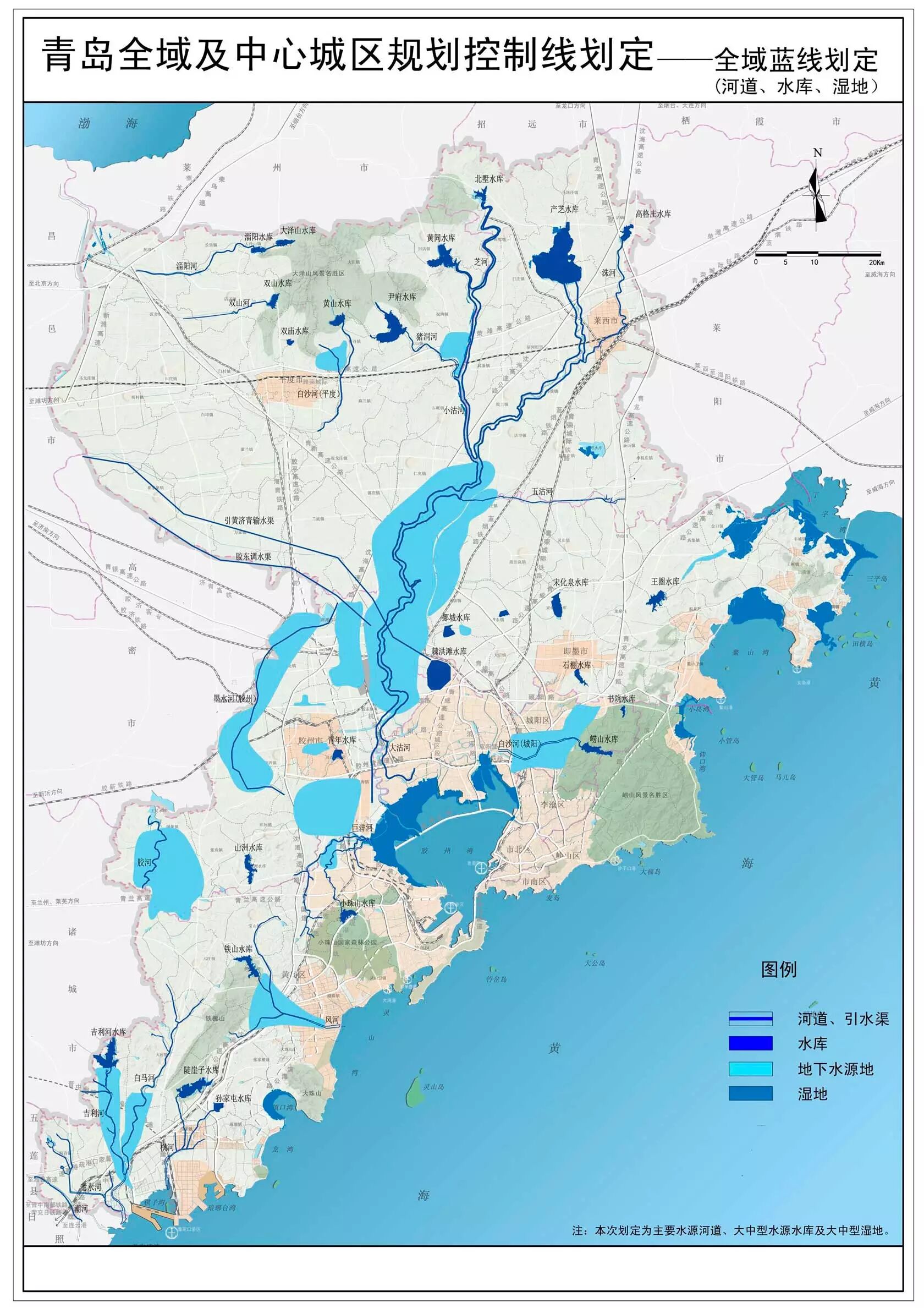 蓝线指的是市域地表水体(含海洋)及地下水源保护区控制的地域界限,包括河流,水库湿地,地下水功能区,海岸带(海域、海岸线、海岸带、海岛、海洋保护区、航道锚地):