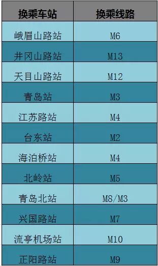 青岛地铁1号线12座换乘车站名单