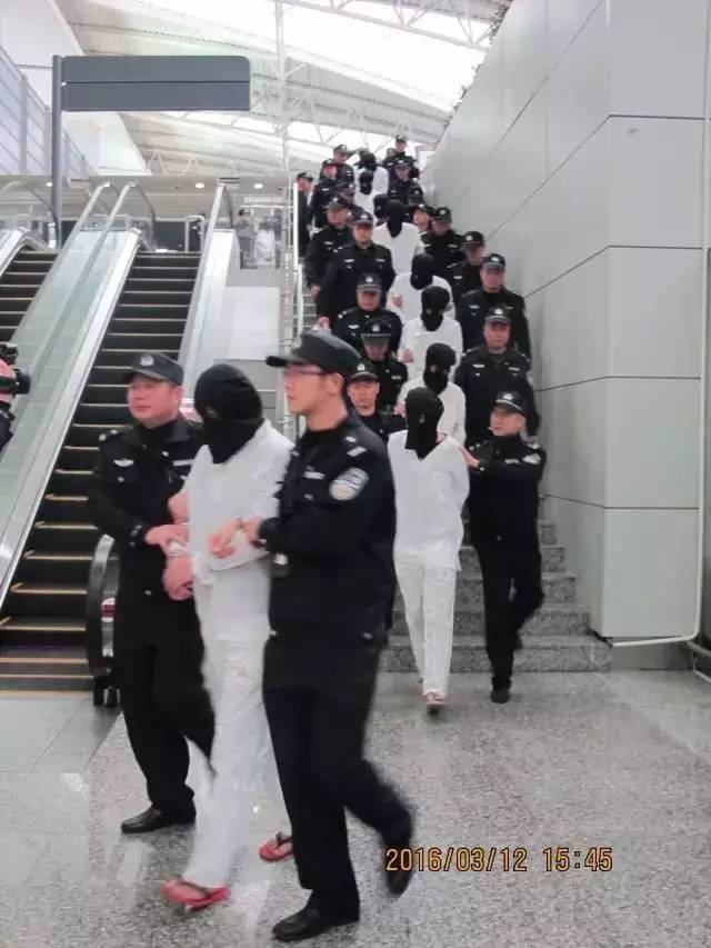 3月12日,广东警方将柬埔寨抓获的38名犯罪嫌疑人乘坐包机押解回国。