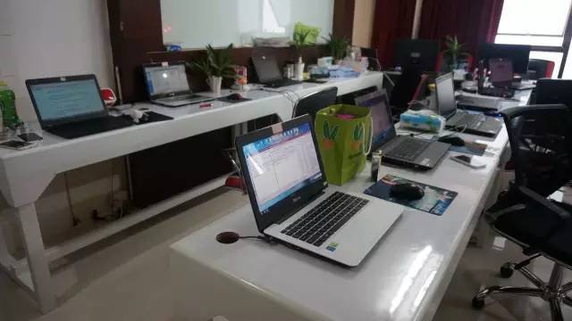 记者看到,三楼、四楼走道两边都是房间,每层共计40余间,不少房间门口仍旧挂着汉字的春联。在被打开房门的房间内,通常摆有10多台电脑,个别屋内放置的电饭煲、饭碗、食品显示,他们的工作和生活多集中于此。不少工位上还摆放着熟悉的“老干妈”。