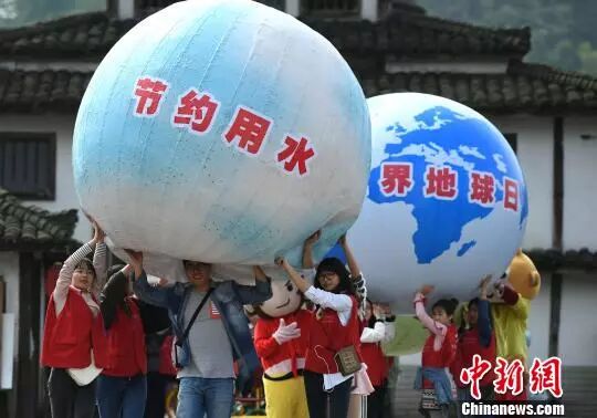资料图:市民举着“地球”共同呼吁民众保护环境、爱护地球。陈超 摄